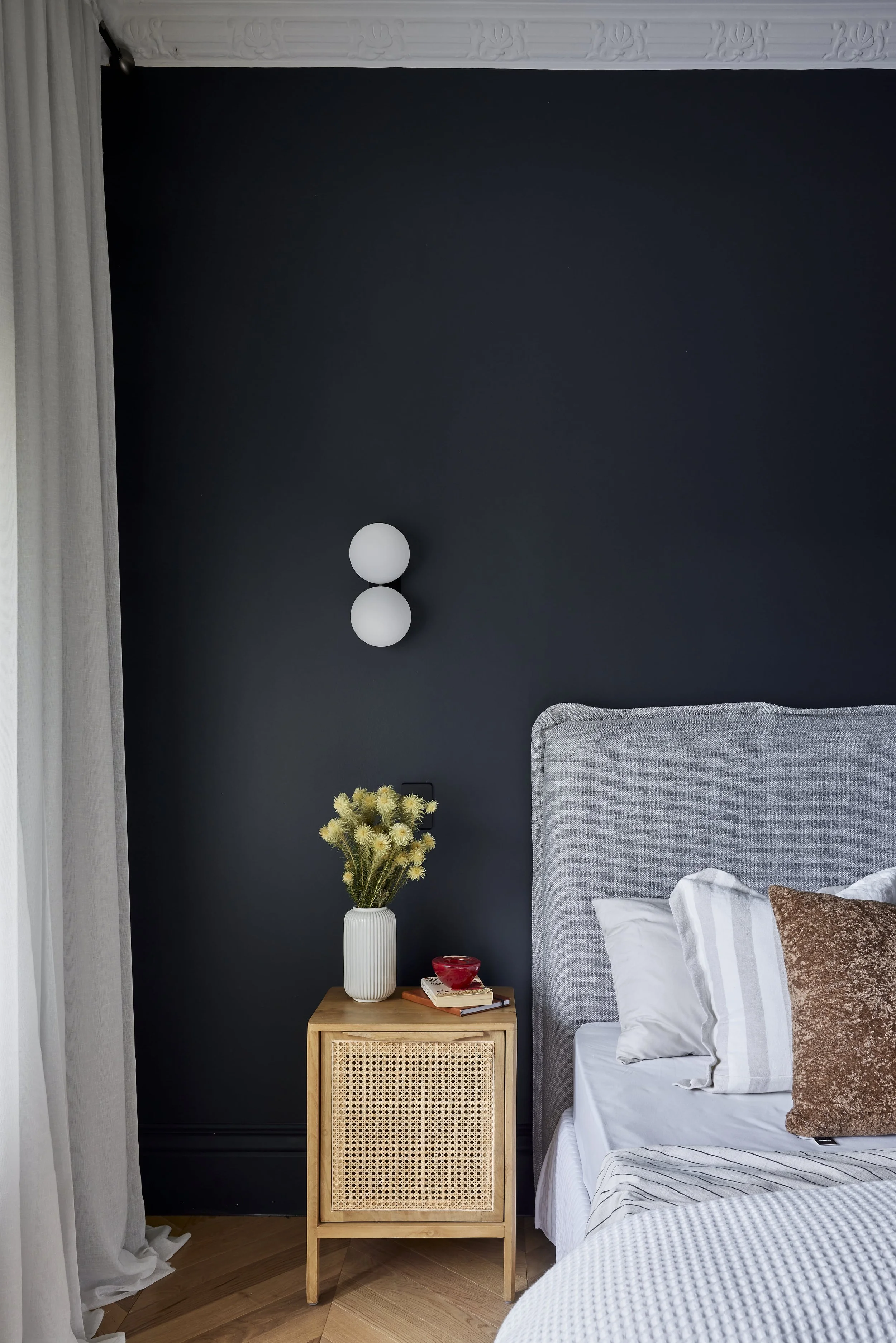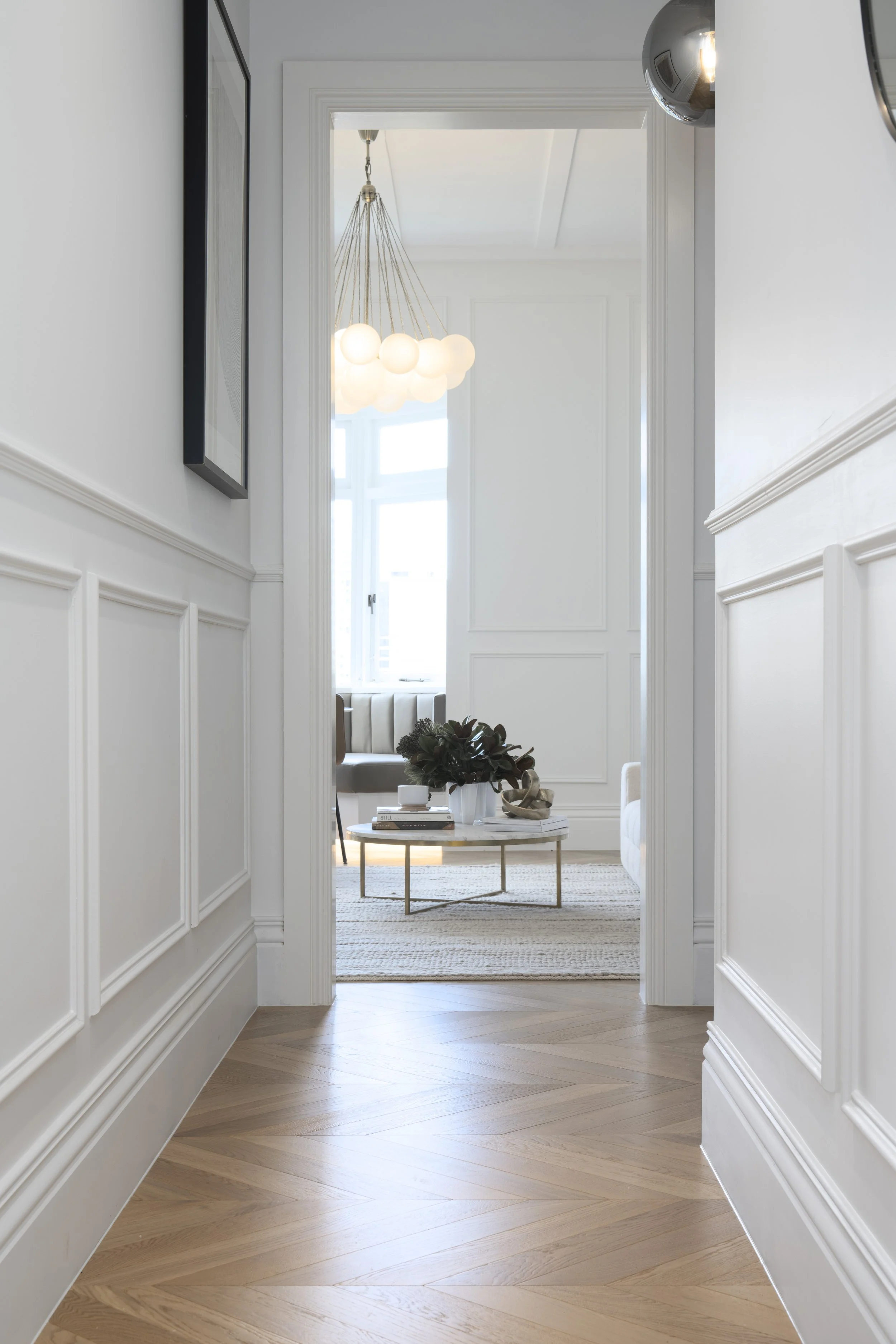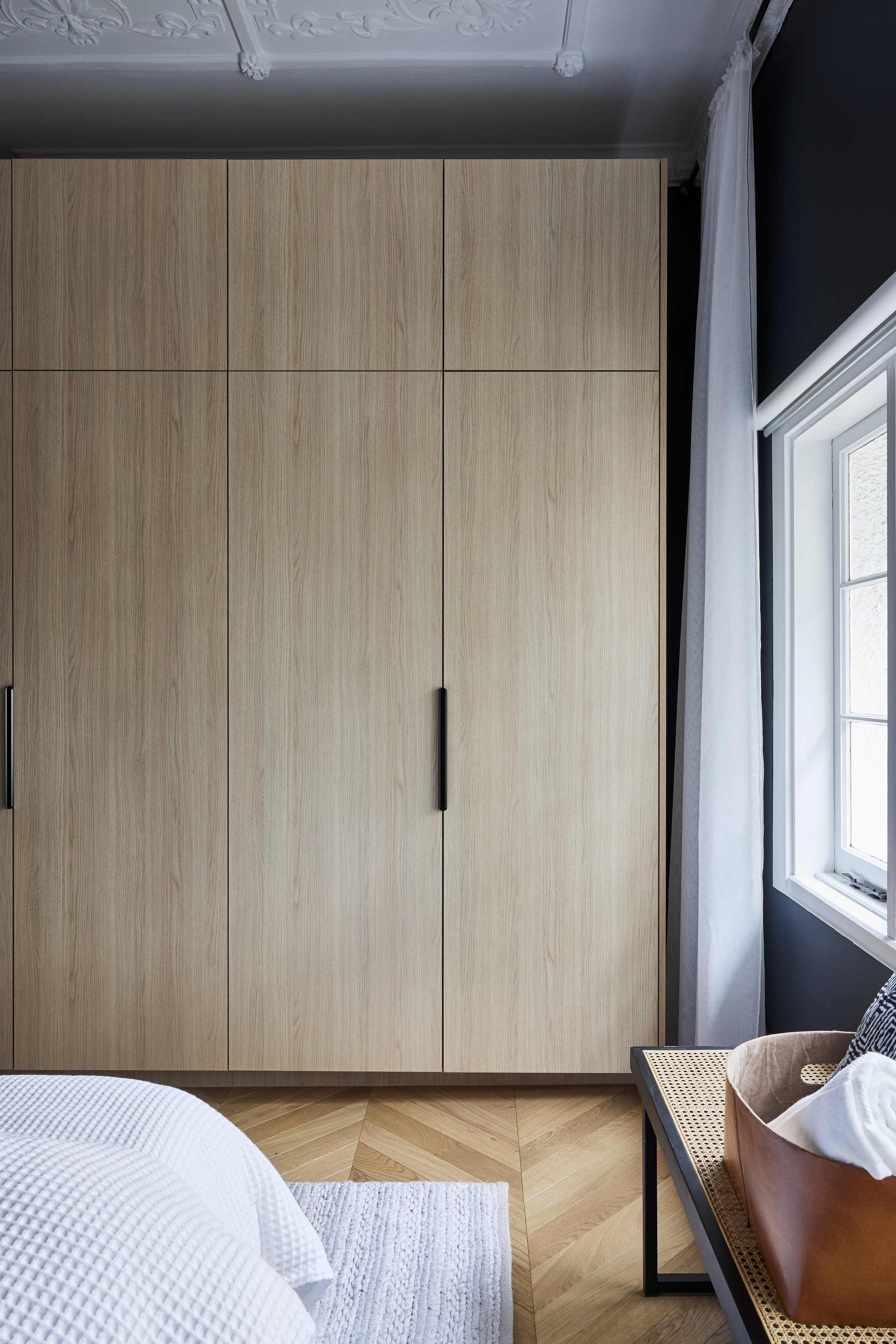 Upon walking through this apartment for the first time we were immediately struck by its incredible presence, despite its state of complete disrepair. The 3.4 metre-high coffered ceilings commanded attention, while the views of Sydney Harbour added a touch of magic. A true jewel, perched high amongst the treetops, that had all but lost its shine. Our vision was to infuse the apartment with old-world grandeur, restoring to it a splendour that had been neglected for decades. Chevron flooring, ornate pendants, and intricate moulding details were carefully incorporated to bring back the character that had been stripped over time. To pay tribute to the quintessential Australian landscape just outside the windows, we drew inspiration from the greens of nearby gum trees and the blues of Sydney Harbour below. The result was an awe-inspiring fusion—a grand European apartment with casual Australiana charm, perfectly in harmony with its building and enviable location. It is our hope that the renewed grandeur of this home would make its past custodians as proud as we are of the final outcome.